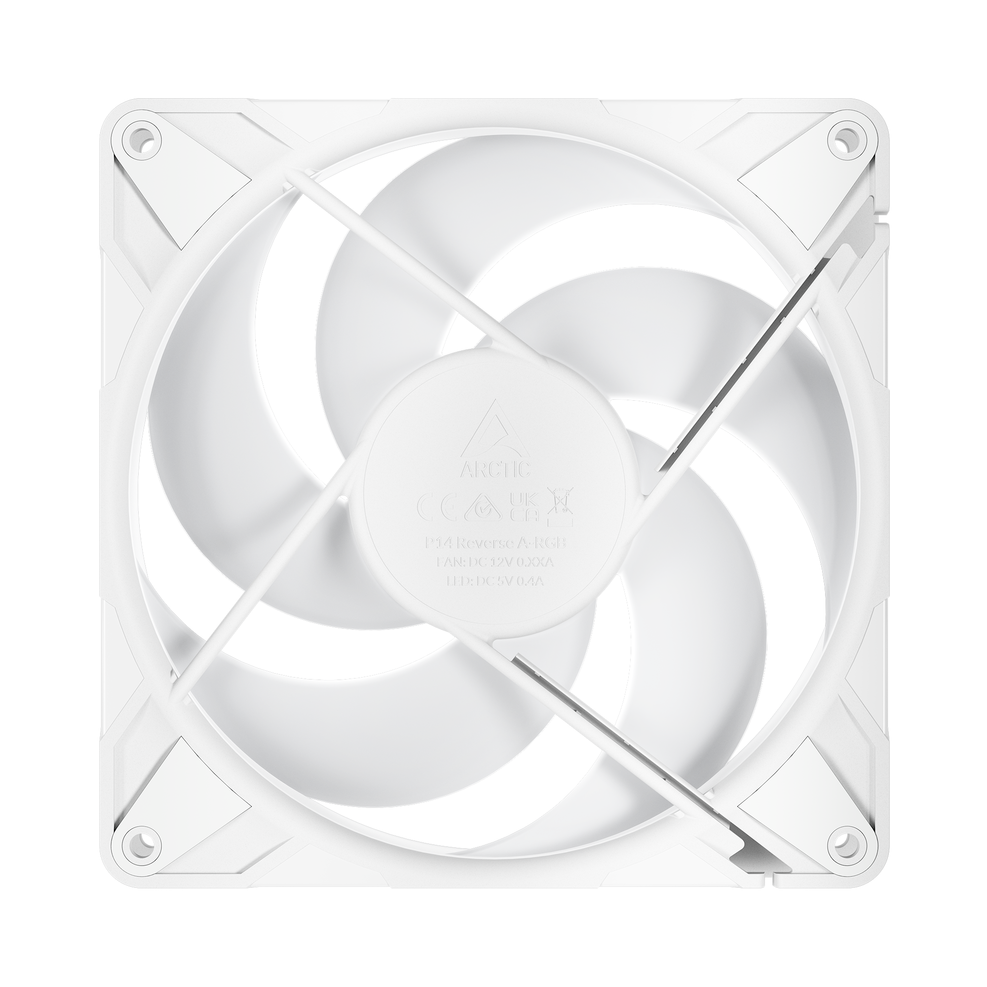 Комплект вентилатори 3-Pack ARCTIC P14 Pro Reverse A‑RGB White 140mm PWM (ACFAN00328A) е премиум комплект от три 140 мм вентилатора с „reverse airflow“ дизайн, при който въздухът се засмуква от задната страна. Моделът предлага високо статично налягане, отличен въздушен поток и ярко A‑RGB осветление — идеален за системи с прозрачен страничен панел и конфигурации с високо съпротивление на въздуха.