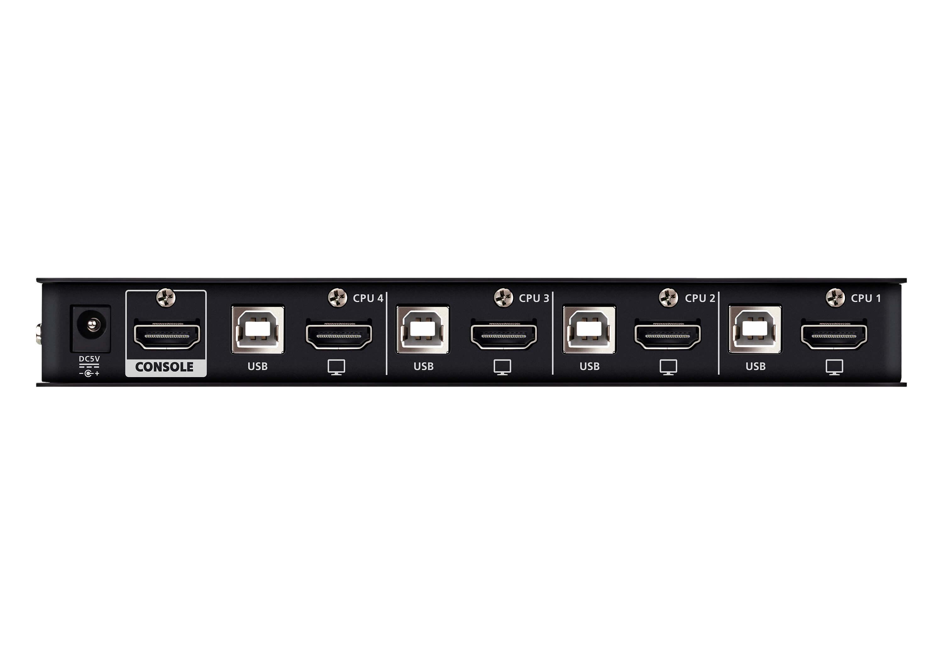 ATEN CS784H е 4‑портов USB 4K HDMI KVM суич, който позволява управление на до четири компютъра, чрез една обща конзола – HDMI монитор, USB клавиатура и USB мишка. Устройството комбинира KVM функционалност с USB периферен hub, което го прави практично решение за среди, където се работи с няколко системи едновременно.