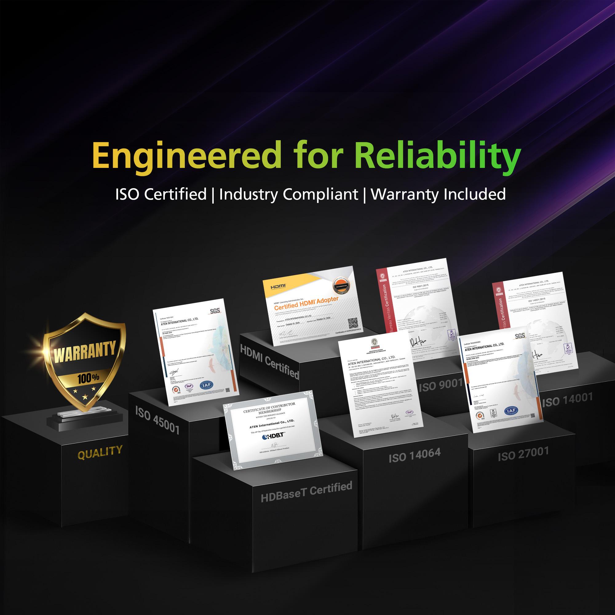 Суичът поддържа 4K UHD 4096 × 2160 @ 60 Hz и ultra‑wide резолюции до 5120 × 1440 @ 60 Hz, което го прави подходящ за модерни професионални и гейминг дисплеи. Технологията ATEN Video DynaSync™ осигурява стабилно превключване без загуба на картина и оптимална резолюция при всяка смяна на системата.
