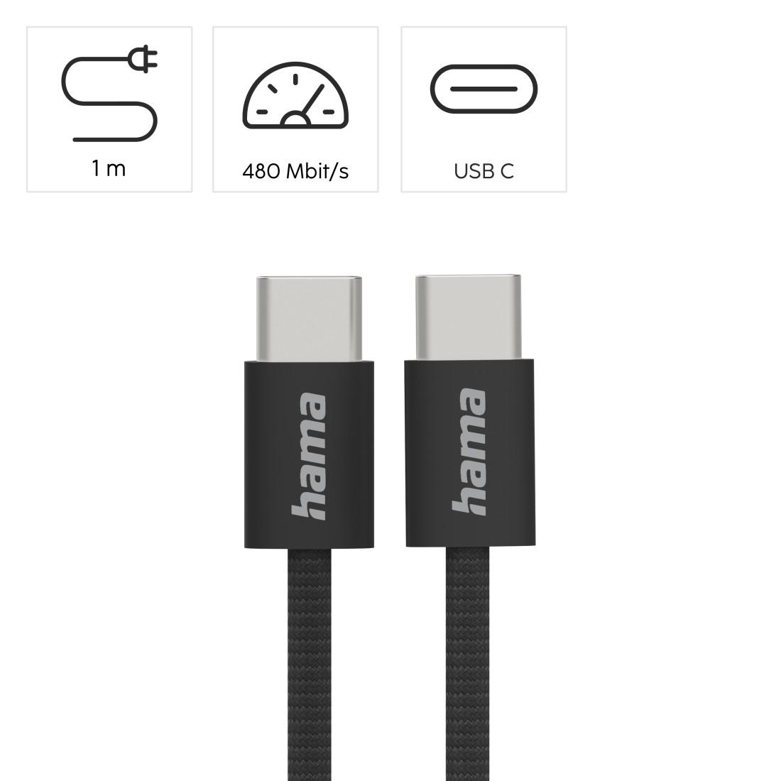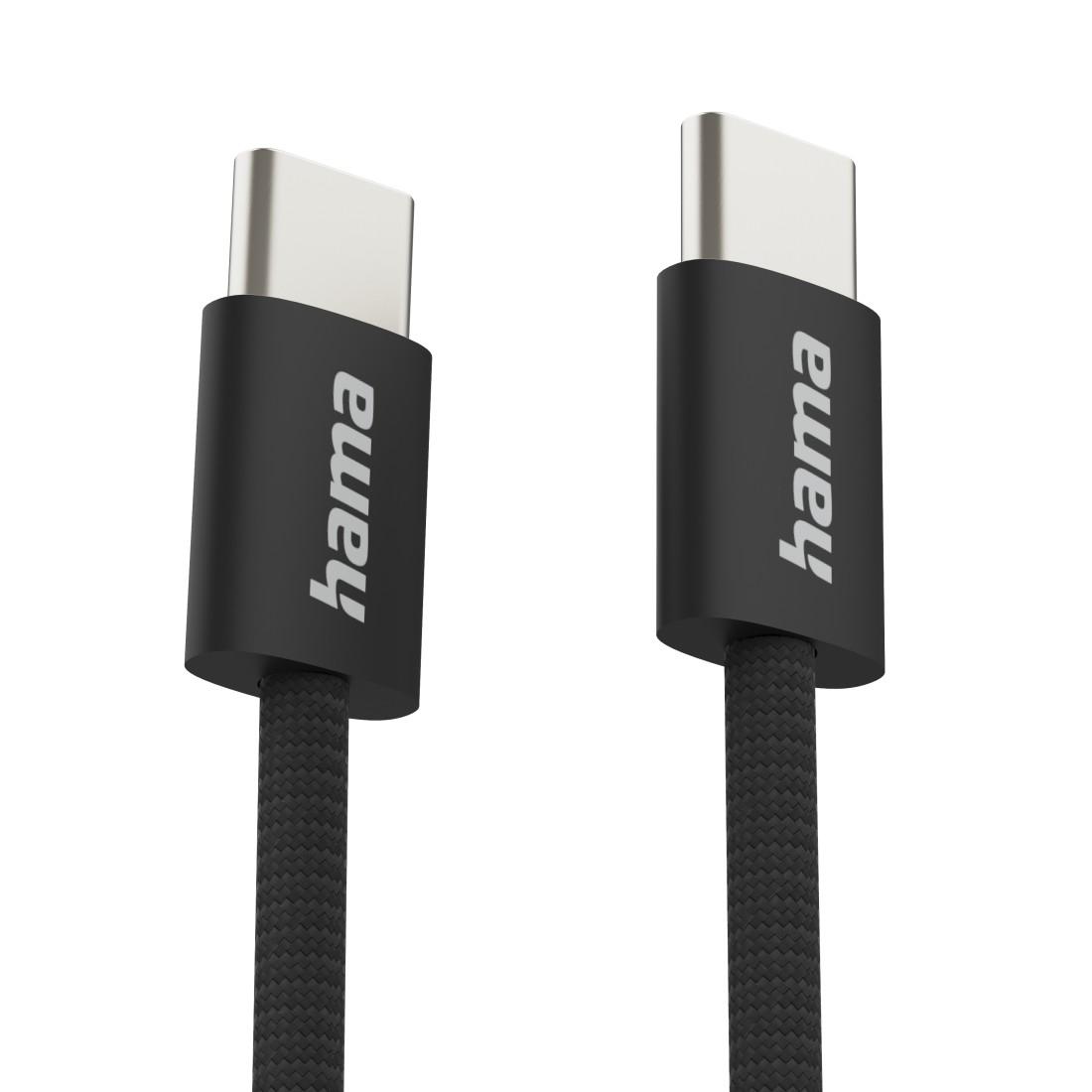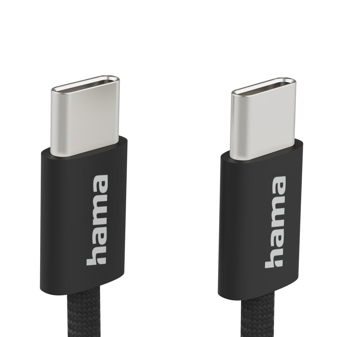 HAMA Кабел за зареждане, "Fabric", USB-C - USB-C, 1 m, Nylon, black