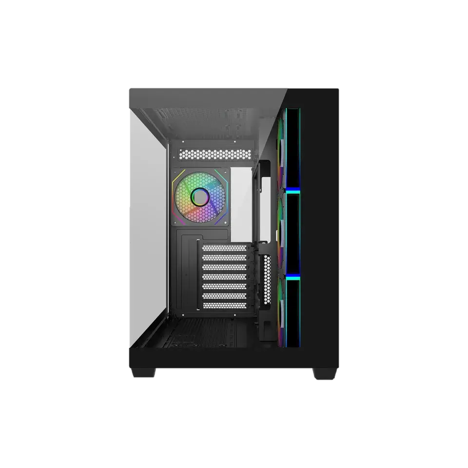 Cooler Master Elite 681 е модерен mid‑tower компютърен корпус, създаден да подчертае хардуера чрез 270° панорамен изглед от закалено стъкло, мощен въздушен поток и отлична съвместимост с висок клас компоненти. Той комбинира стил, функционалност и охлаждаща ефективност, подходящ за геймърски и ентусиастки конфигурации.