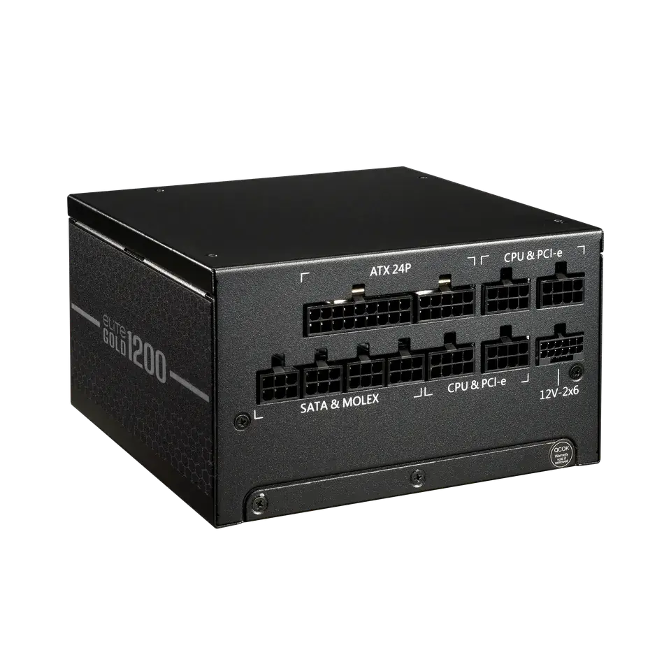 Cooler Master Elite Gold 1200 е напълно модулно 1200W ATX 3.1 захранване, създадено за висок клас геймърски и работни станции. То предлага 80 Plus Gold ефективност, тих FDB вентилатор и стабилна работа дори при тежки натоварвания до 40°C. С поддръжка на следващо поколение GPU и надеждни защитни механизми, то осигурява мощност, готова за бъдещи надграждания.