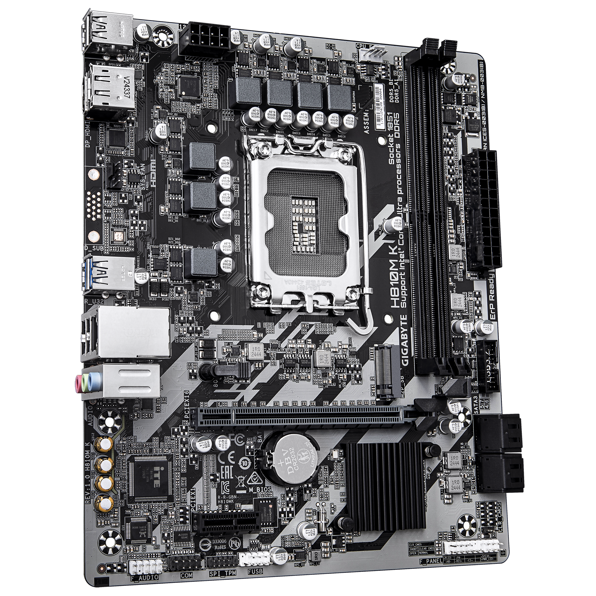 GIGABYTE H810M K е модерна и ефективна micro‑ATX дънна платка, създадена за процесорите Intel Core Ultra (Series 2). Тя предлага поддръжка на DDR5, стабилен VRM дизайн, PCIe 4.0 за високоскоростно съхранение и надеждна свързаност. Осигурява стабилна и бъдещe‑ориентирана платформа, подходяща за ежедневна работа, продуктивност и компактни PC конфигурации.