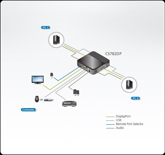 осигурявайки удобни опции за превключване между тях – с клавиатурни комбинации, мишка, или специален remote port селектор.