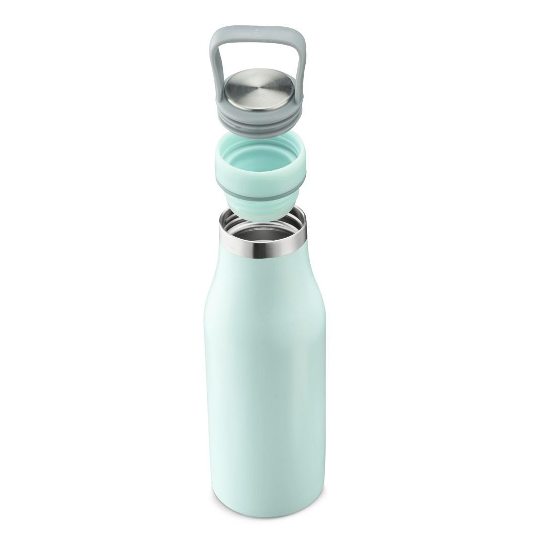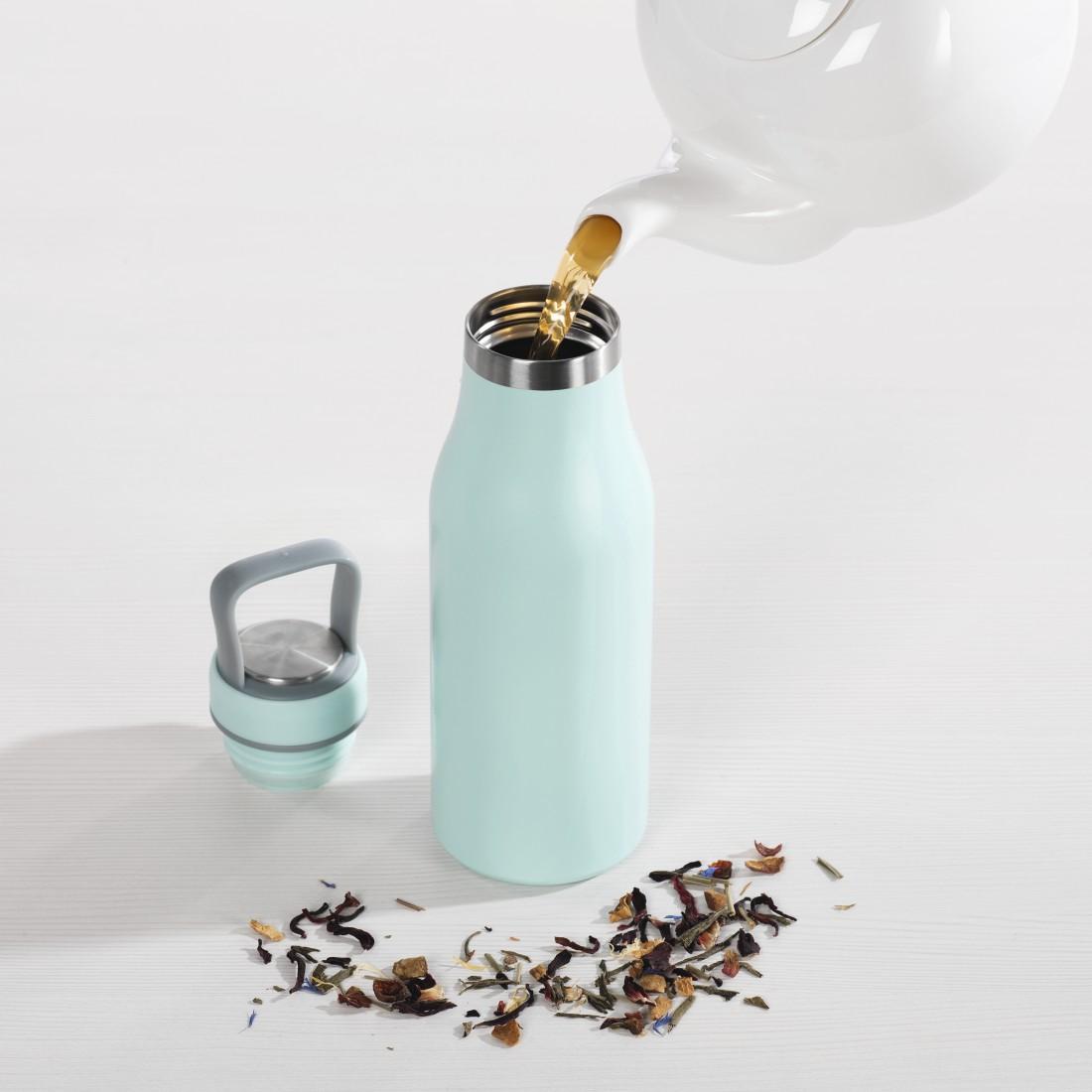 Бутилка от неръждаема стомана с двойна изолация: горещите напитки остават горещи за около 7 часа, студените напитки за около 9.