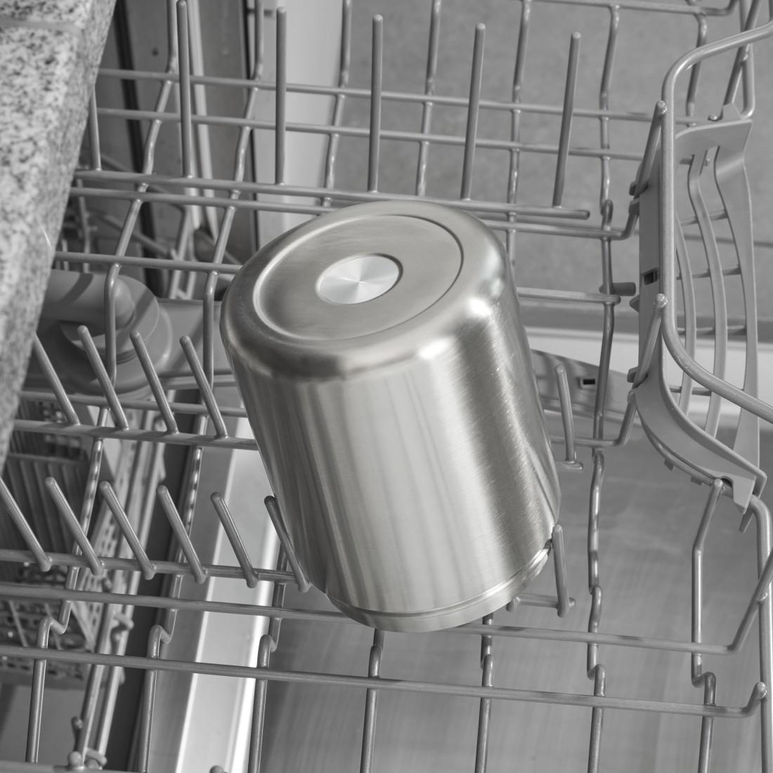 Чашата за многократна употреба е изработена от неръждаема стомана с пластмасов капак, може да се използва много години благодарение на своите дълготрайни и здрави материали.