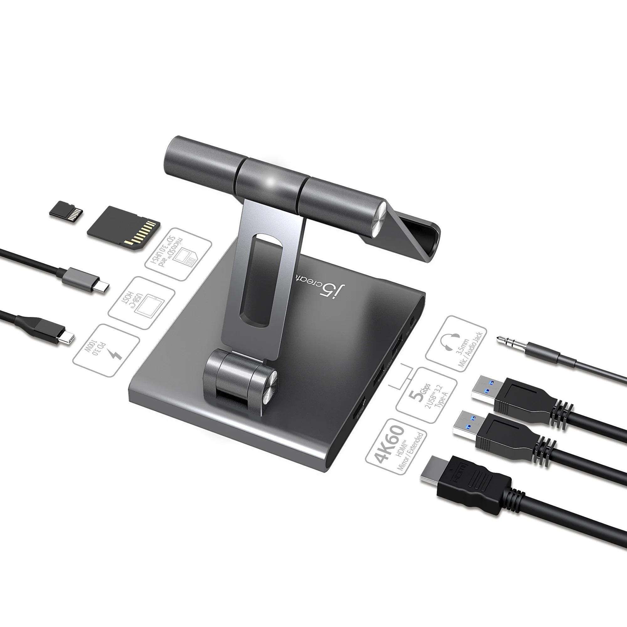 JTS224 е изработенa от здрав алуминий и е проектиранa да поддържа iPad Pro iPad Air и таблети до 12.9". Сгъваема е за лесно транспортиране и съхранение. Ъгълът на гледане може да се регулира по ваш вкус и подобрява изживяването ви при гледане. Интегрираната USB-C докинг станция включва HDMI 2.0 порт, два USB Type-A 5Gbps порта, SD / microSD 3.0 четец на карти, аудио/микрофон комбиниран жак и PD 100W порт за зареждане.