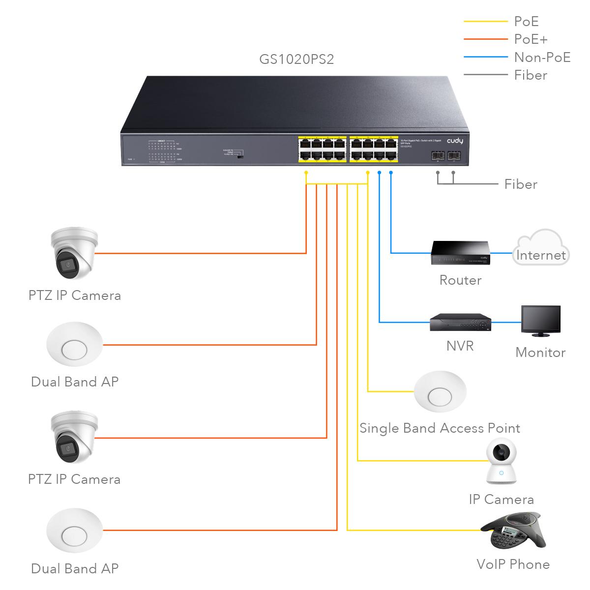● Режимът VLAN поддържа 16 POE+ порта, изолирани един от друг