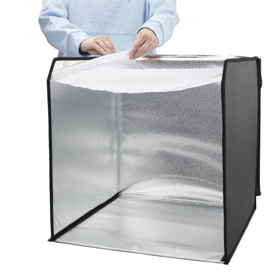 Мека светлина, равномерно осветление: прикрепете допълнителен разсейващ плат в горната част към вътрешните закачащи се ленти