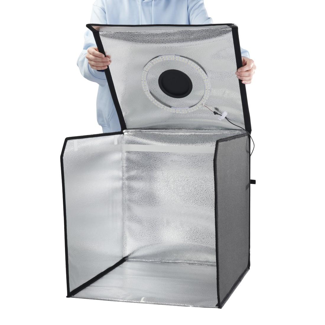 Страхотно осветление: интегрирана пръстеновидна светлина с 10,2" (ø 25 см) и 128 светодиода в горната част на светлинния куб