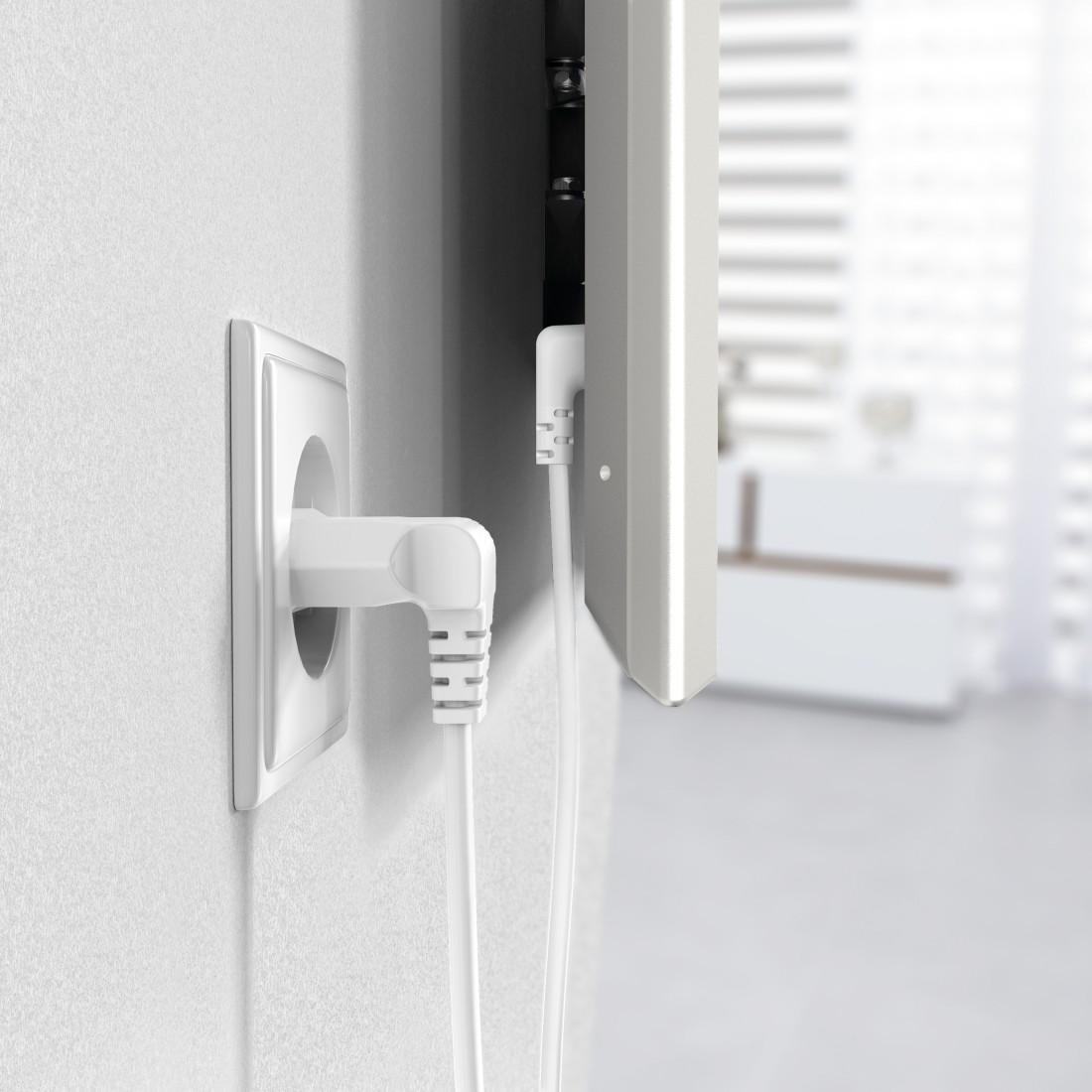 Захранващ кабел HAMA, под ъгъл 90°, евро, двоен жлеб/C7, 5 м, бял