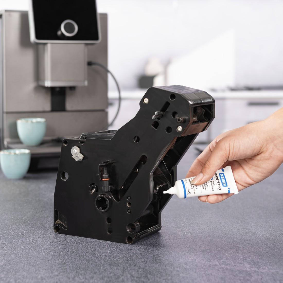 Специална смазочна грес за кафемашини, модули за варене и много други: безопасната за храна мултисиликонова грес е уплътнителят и лубрикантът за всички случаи в кухнята, домакинството, банята и работилницата - и идеална за гресиране на движещите се части в напълно автоматично кафе агрегати за варене