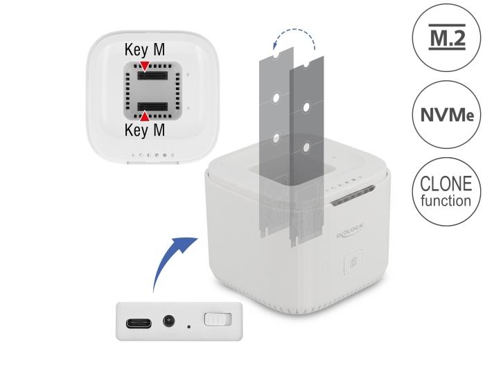 M.2 станция от Delock позволяваща инсталирането на два M.2 PCIe NVMe SSD диска и може да бъде свързана