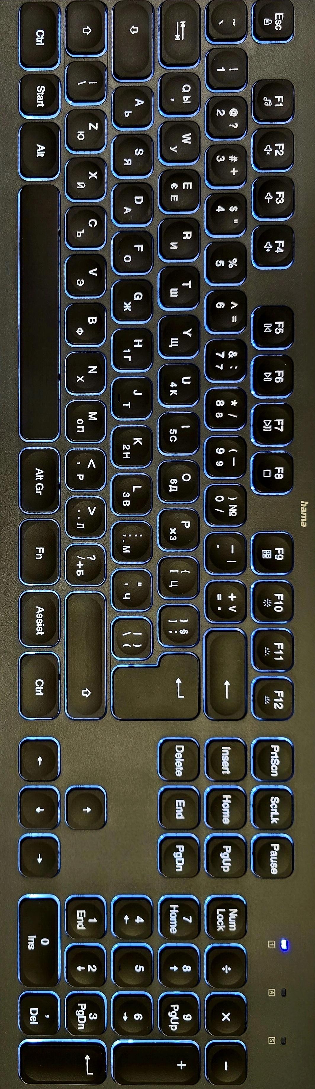 Пълноформатна клавиатура, 105 клавиша, с матова повърхност
