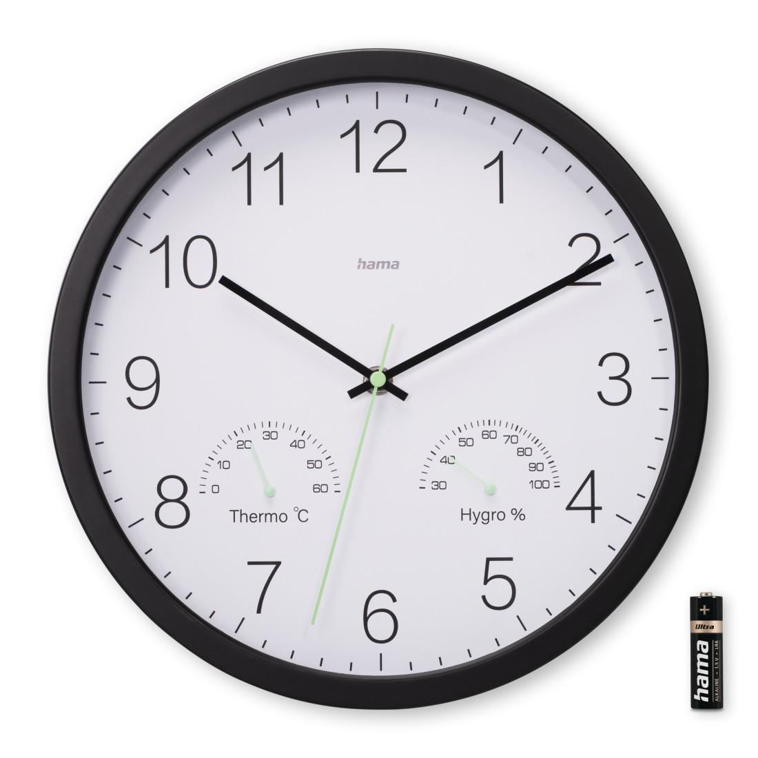 HAMA Стенен часовник “Santorini”, без тиктакане, Термо/хигрометър, Ø 30см, бял