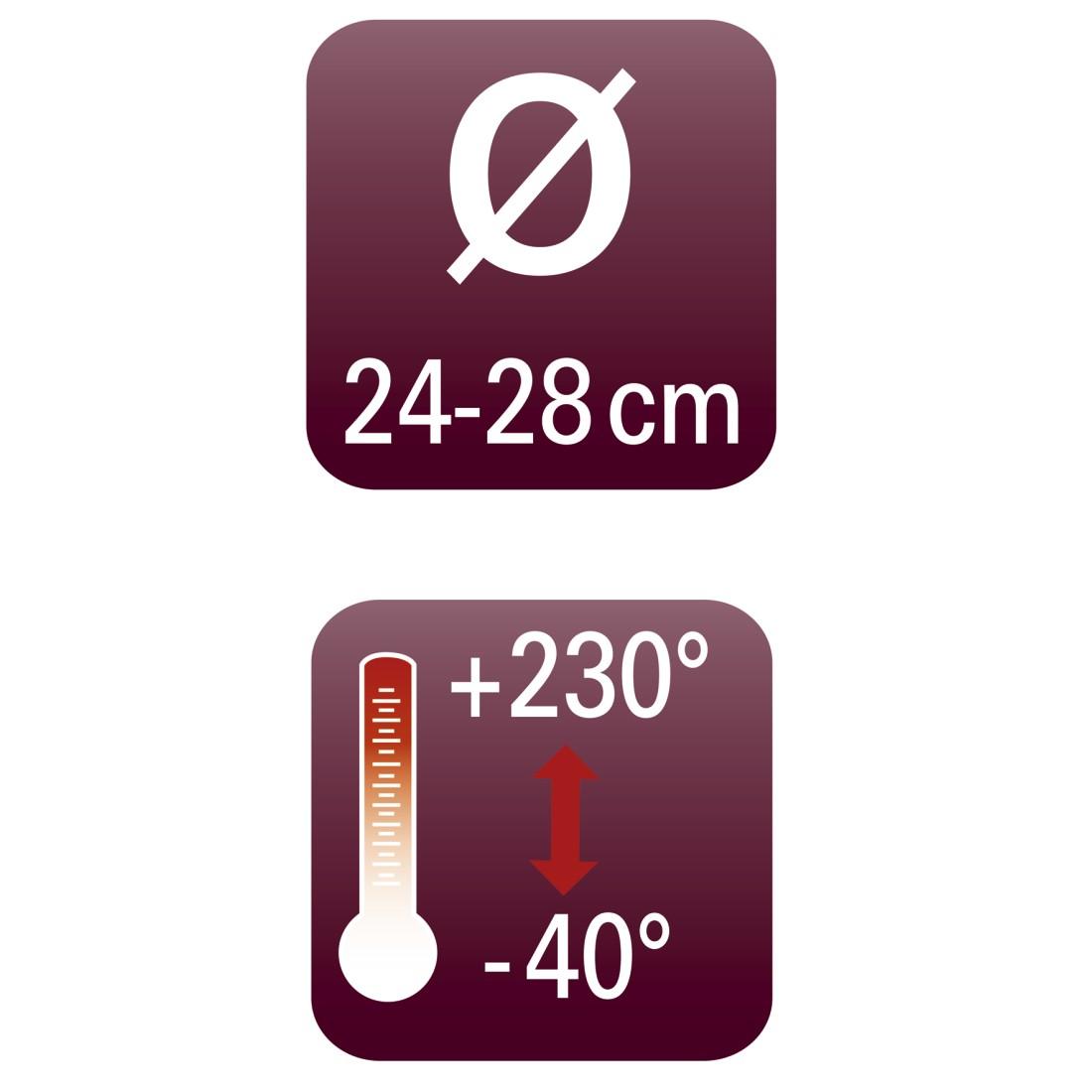 - Благодарение на специалния дизайн на капака, който заменя три размера капака и може да се използва за тенджери и тигани от 24 до 28 cm