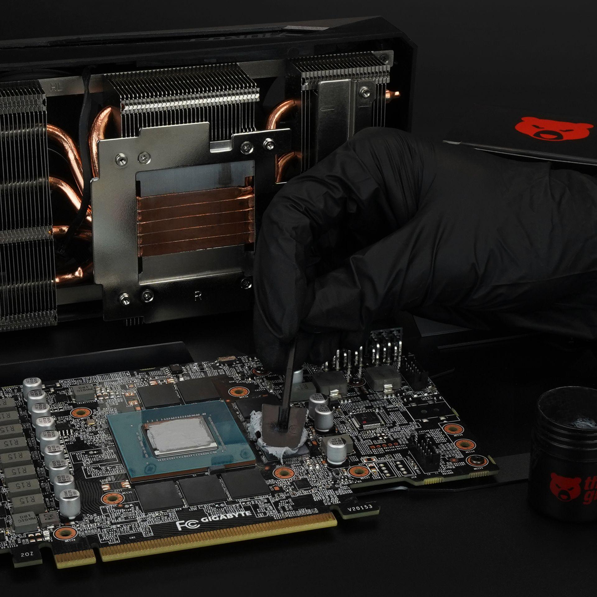 TG Putty е електрически непроводима алтернатива на конвенционалните термични подложки. Като лесен за нанасяне и гъвкав запълнител на празнини, той компенсира разликите във височината, което го прави идеален като заместител на термичните подложки на GPU. Графичните карти обикновено разполагат с няколко типа термични подложки с различна дебелина от фабриката, изискващи различни подложки по време на смяна или при преобразуване на охладителя във воден охладител на GPU.