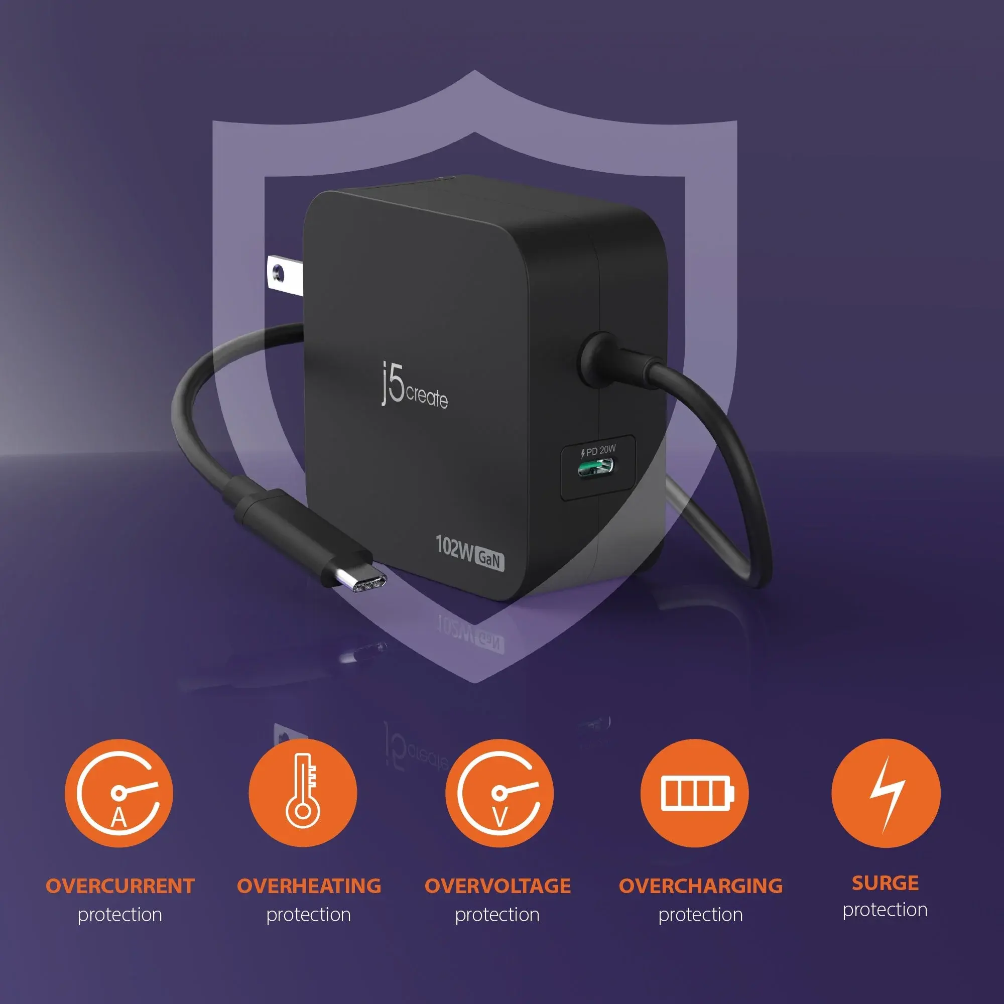 J5create JUP25102V – 102W GaN USB-C® зарядно с два порта: