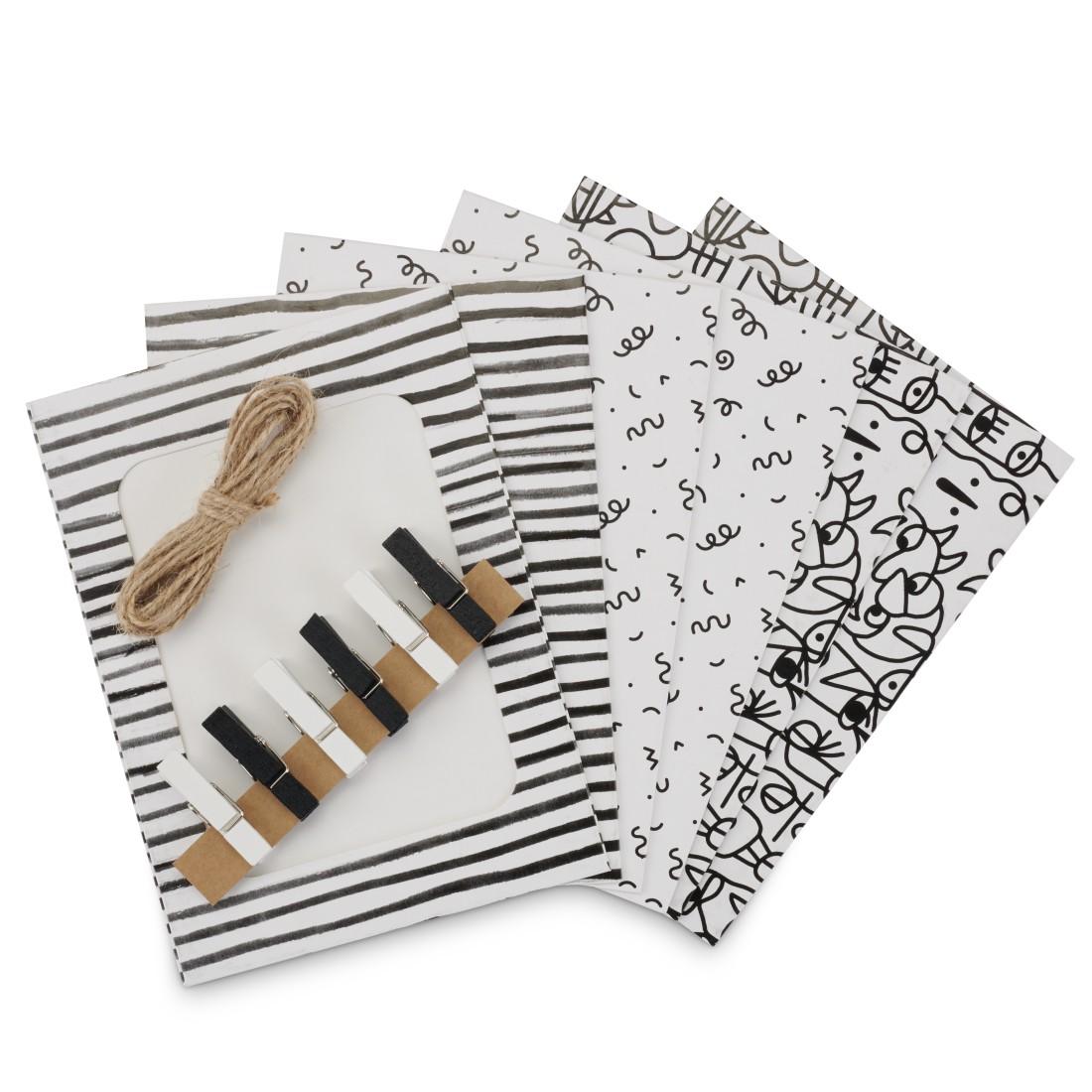 Комплекти хартиени рамки в различни дизайни: линии, цветни, черно/бели.