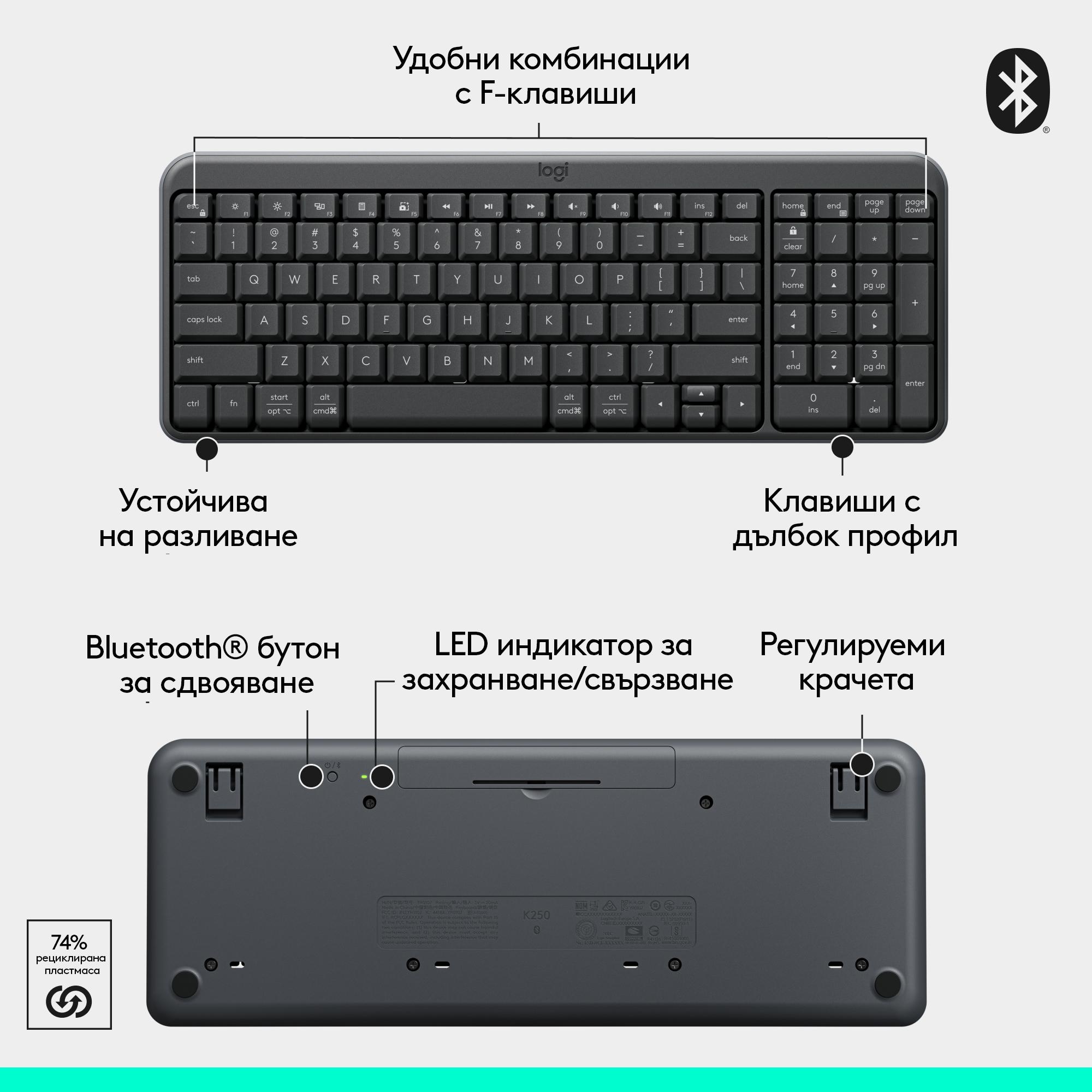 Безжична клавиатура Logitech K250 Graphite - Кирилизирана