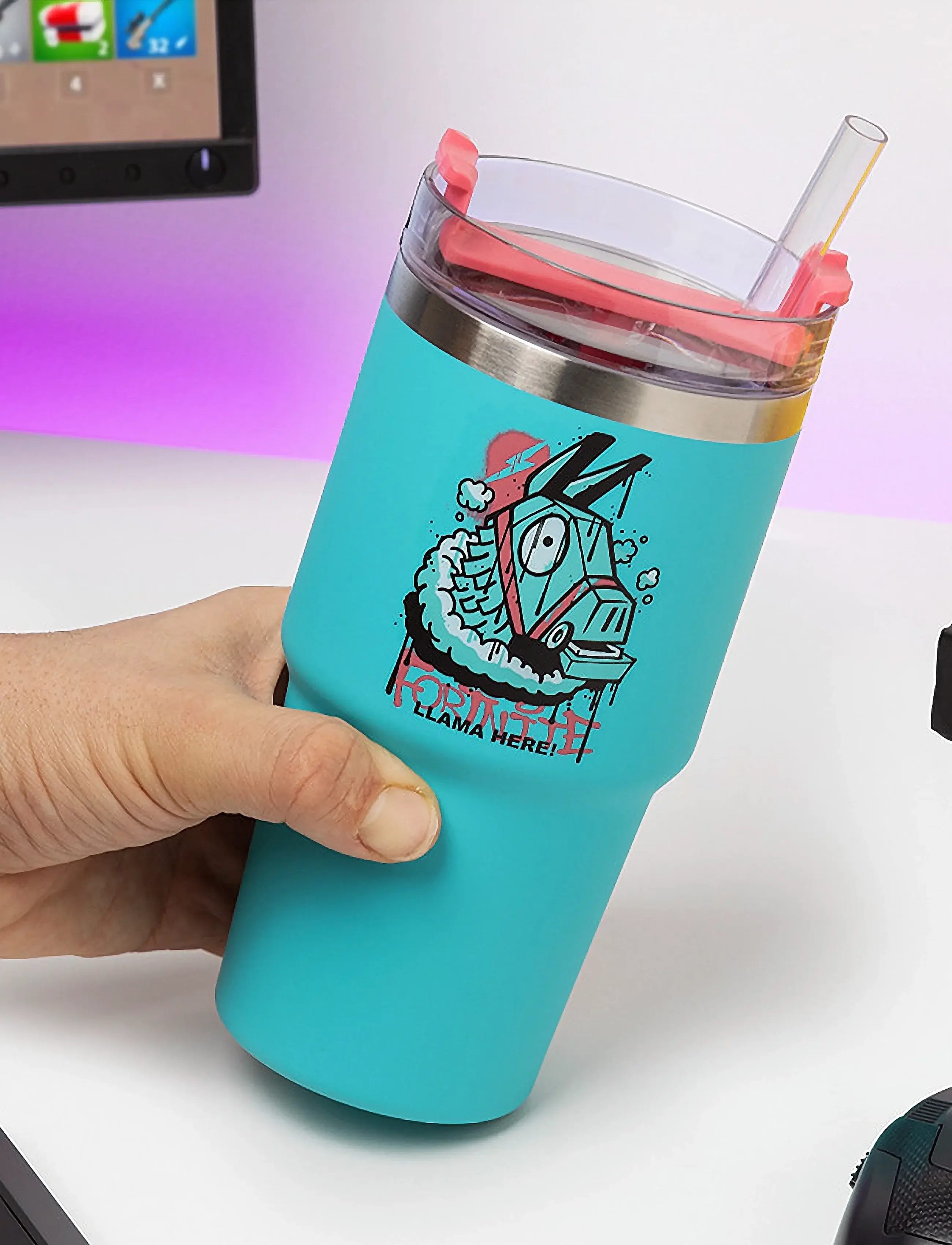 Чаша Paladone Fortnite – Gamer Cup - 600ml - Изолирана термо бутилка с капак и сламка