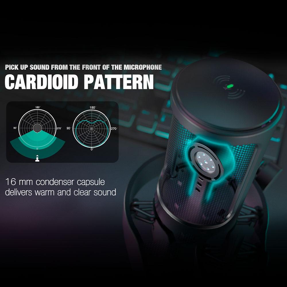 Ясно и чисто аудио качество: С високочувствителна кондензаторна капсула, микрофонът улавя всеки нюанс на гласа – дори и най-нежните тонове. Кардиоидният модел ефективно намалява фоновия шум от вентилатори или компютърна вентилация.