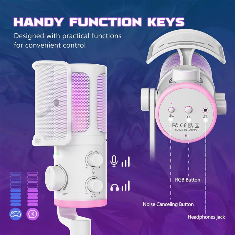 FIFINE AMPLIGAME AM6 – Кондензаторен USB-C микрофон с RGB осветление