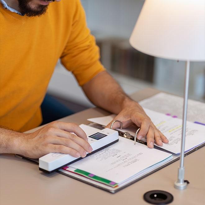 Съвместим със софтуера Readiris™, IRIScan Book 7 конвертира документи в Word, PDF и Excel. Предлага се и версия за хора с дислексия, оптимизирана за асистивни технологии. Подходящ за ученици, преподаватели, лекари, търговци и мобилни професионалисти. Това е интелигентно решение за бърза дигитализация навсякъде и по всяко време.